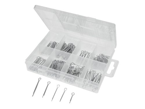 A 175 darabos galvanizált biztonsági csapok választéka egy praktikus rendező vagy tároló dobozban. Ez a kiváló minőségű termék tökéletes választás minden műhelynek és szerelési feladatnak. A galvanizált bevonat garantálja a csapok tartósságát és ellenálló képességét a rozsdásodással szemben.