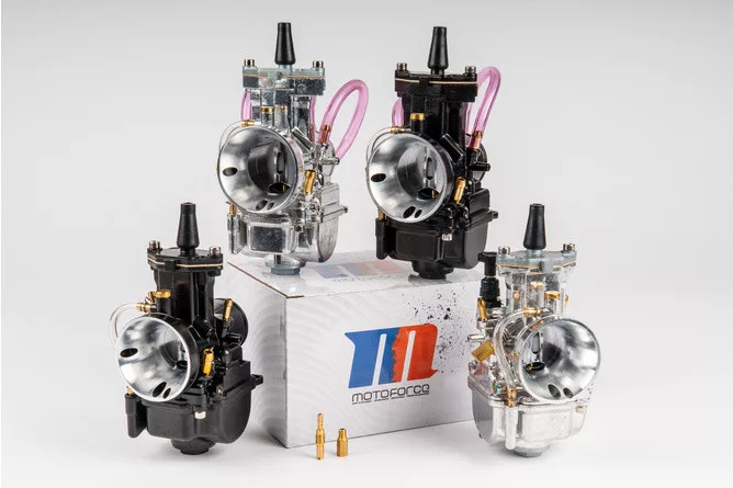 PWK 28 - 34 mm Karburátor Motoforce Racing, króm verzióA motorod, robogód vagy akár a mopeded teljesítményének javítása érdekében érdemes egy nagyobb karburátor beszerelését fontolóra venni. Ez a 2 ütemű PWK típusú karburátor kiváló teljesítményt nyújt igazán kedvező áron.Mi az a PWK karburátor?A PWK karburátorok nagy átmérőjű tuning karburátorok, amelyek elsősorban versenyzéshez készültek. Ezeket üzemanyag-bemenettel, krómozott lapos csúszkával, teljesítményfúvókával, nagy lebegőkamrával és kar...