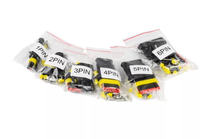 A készlet 6 vízálló csatlakozót tartalmaz: 1x2, 1x2, 1x3, 1x4, 1x5 és 1x6 kábelvég. A csatlakozók két részből állnak (dugóház és aljzat ház), beleértve a lapos dugókat, lapos aljzatokat és kupakokat.
