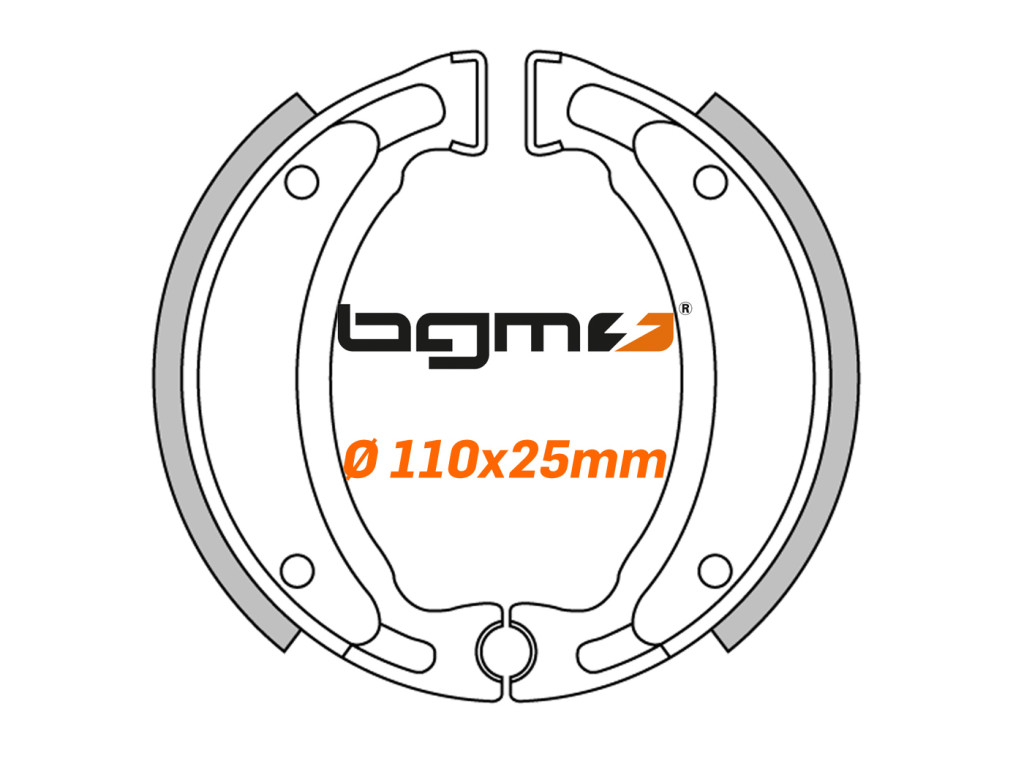 Fékpofák BGM PRO Ř=110x25mm YAMAHA BWs 50, Neos 50, Why, Axis, Slider, MBK Bosster 50, Ovetto 50, Flipper, Stunt, Forte, KEEWAY Flash, Focus, RY6, RY8, Matrix, F-Act, GENERIC Roc, Ideo, XOR, CPI Aragon, Oliver, Formula R, Popcorn, Hussar.
