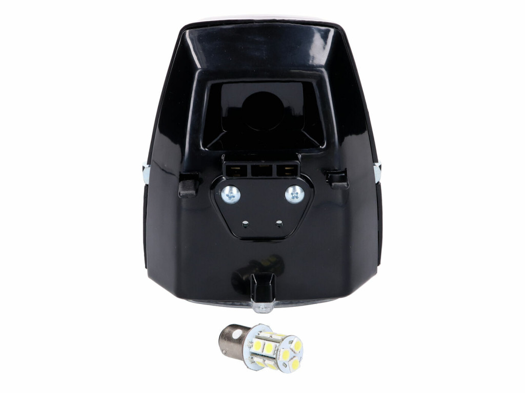 Ez a fekete cserélhető fényszóró, LED izzóval (BAX15D) és levehető sebességmérő / fordulatszámmérő burkolattal, tökéletesen alkalmas Puch Maxi és más különböző robogókhoz. Az OEM szám csak összehasonlítási célokat szolgál: 349.6.53.500.0.