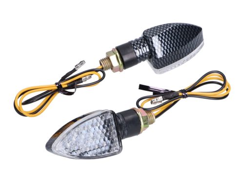 Index / irányjelző szett M8 menetes LED fekete Boost IGyártó: MotomotorsA termékleírás:A Boost I LED mini index szett stílusos kiegészítő, amely vizuálisan tökéletesíti minden robogót, motorkerékpárt és ATV-t. A fekete házas és méhsejt mintás, átlátszó indexbúrák modern és egyedi megjelenést biztosítanak. Az indexek 64 mm hosszúak (a burkolattól mérve), és M8 menettel rendelkeznek, így a felszereléshez 8 mm-es furat szükséges.A szett két darab különálló indexet tartalmaz. A megfelelő működés érd...