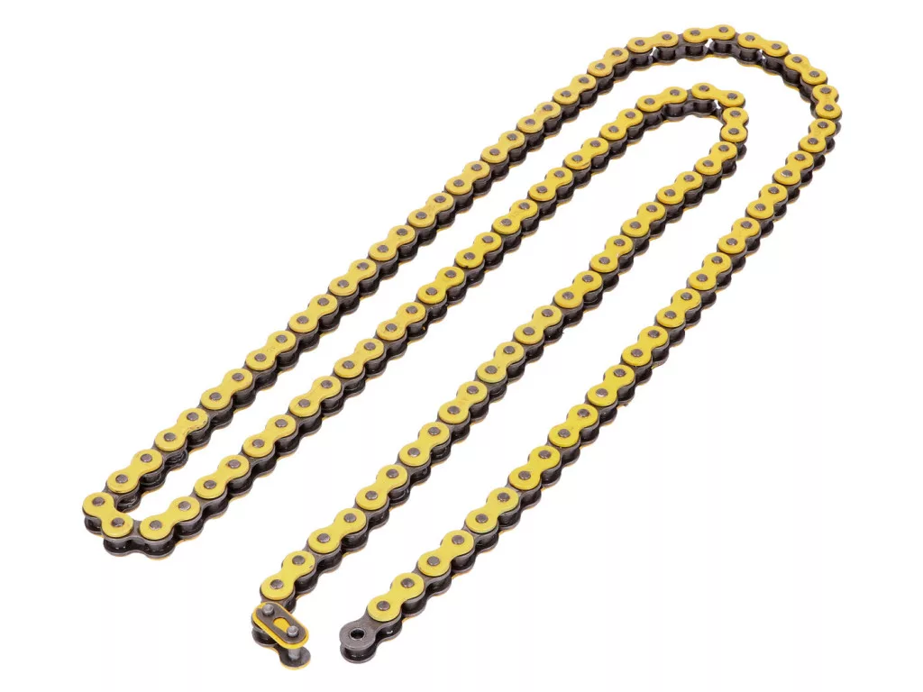 A KMC által készített sárga színű erősített univerzális lánc a legjobb választás a motorkerékpár tulajdonosok számára. A lánc 120 láncszemmel rendelkezik, így biztosítva a kiváló teljesítményt és tartósságot. Különösen a hangolt motorok esetében elengedhetetlen az erősített lánc használata!