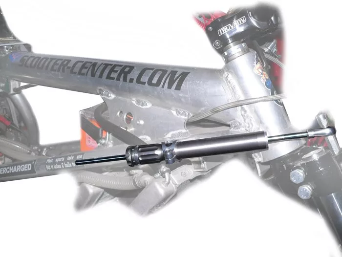 A kormánycsillapító teljes hossza 380 mm, a rendelkezésre álló csillapítási távolság pedig 125 mm. A szabadon pozícionálható rögzítőkarral szinte minden járműre felszerelhető.