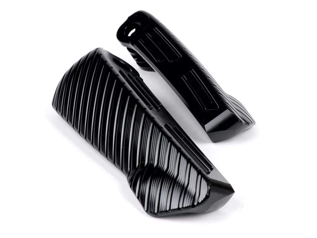 A Moto Nostra CNC hátsó lábtartói kiváló minőségű maróoltott lábtartók, melyek elérhetők matt és fényes fekete színben. Ezek a lábtartók könnyedén cserélhetők a standard lábtartókkal, így az eredeti mechanika sértetlen marad.