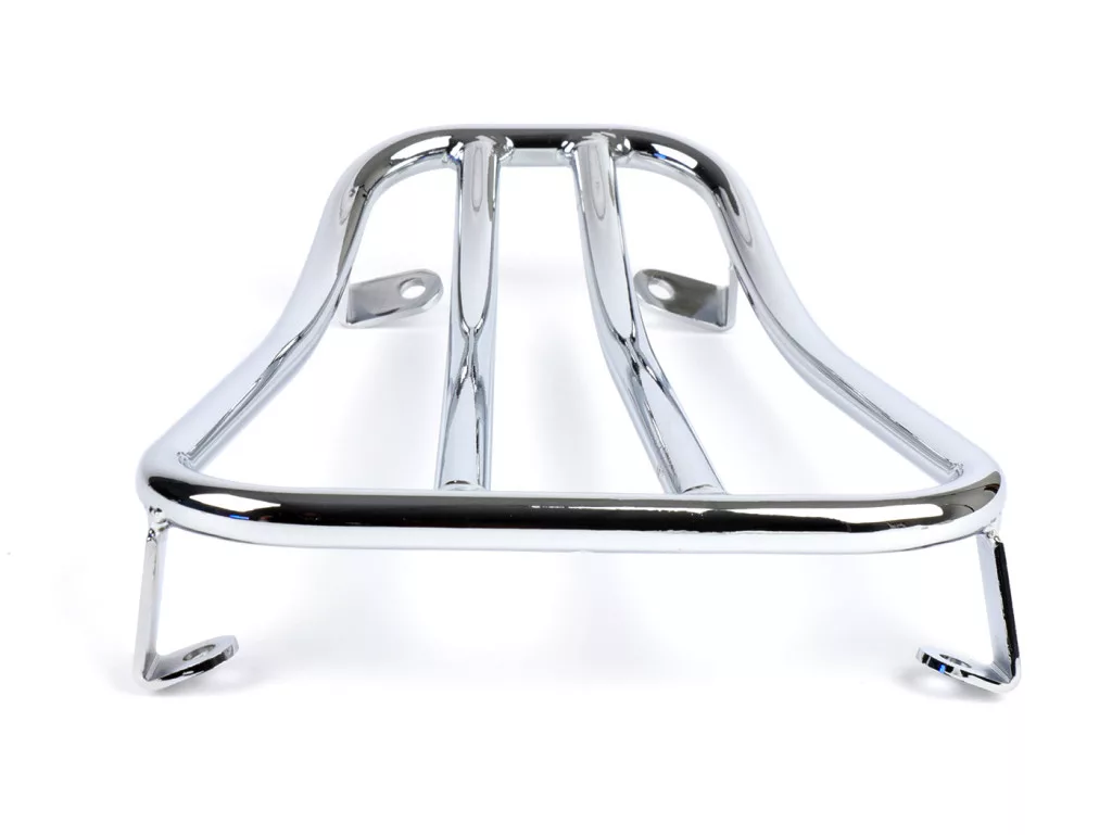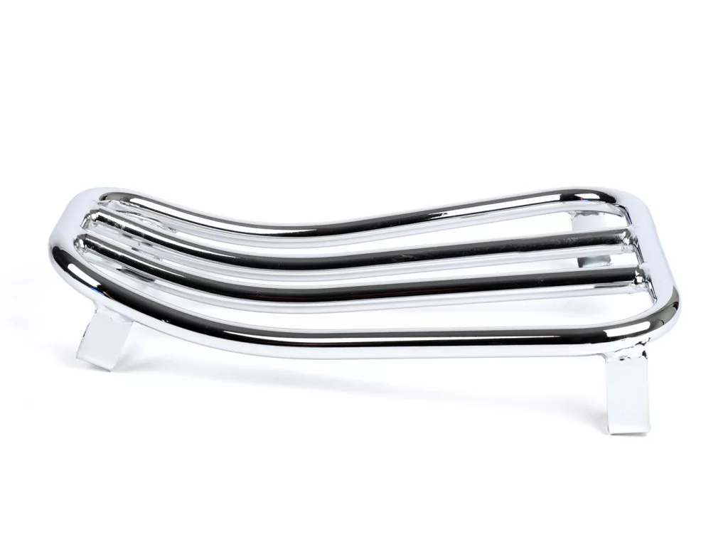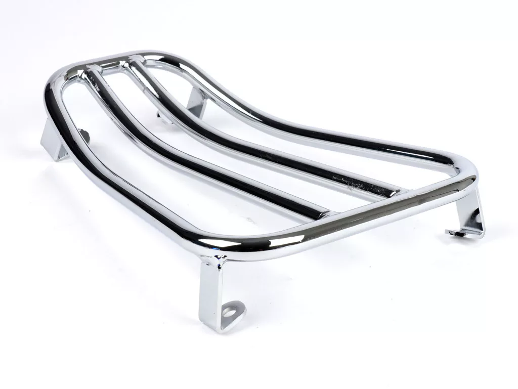 A csomagtartó hajlított csőből készült, amely fekete porfestéssel vagy fényes krómozással rendelkezik. Nagyon stabil kialakításának köszönhetően alkalmas nagyobb csomagok szállítására is. Összességében elmondható, hogy a gyönyörű Vespa vonalak kiemelkednek, és a mindennapi használhatóság jelentősen javul.