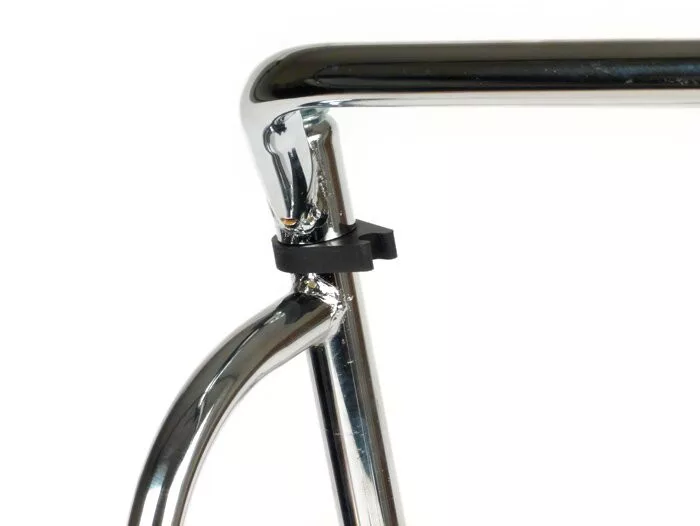 A Crash bar leg shield -MOTO NOSTRA- Vespa PX80 - 200 - black egy kiváló minőségű tartozék, amely megvédi a lábtartót. Ez az 1980-as évekből származó régi kiegészítő újra gyártásra került. A fekete vagy króm színben kapható 3 darabos készlet könnyen felszerelhető a keretbe, anélkül hogy fúrással vagy más rögzítéssel kellene bajlódnod.