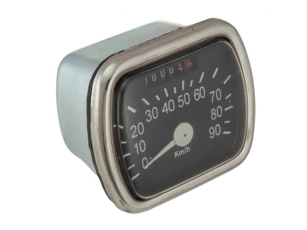 Az általunk kínált termék egy kiváló minőségű, Grade B kategóriájú sebességmérő, melynek maximális sebessége 90 km/h. A sebességmérő négyzet alakú, méretei pedig Ø 73x62 mm. Az eszköz fekete színű arccal rendelkezik, melyet fehér számok díszítenek. A gyűrű része króm bevonattal ellátott, ami elegáns megjelenést kölcsönöz a sebességmérőnek. A csatlakozás 1,9 mm-es, ami biztosítja a stabil és megbízható kapcsolatot más eszközökkel.