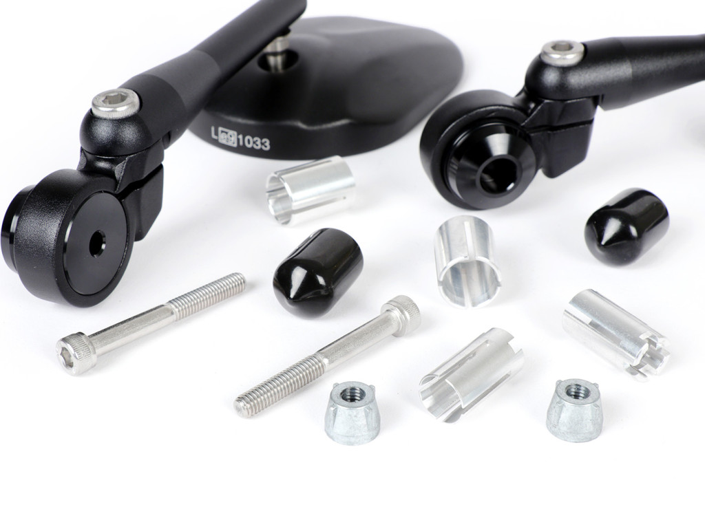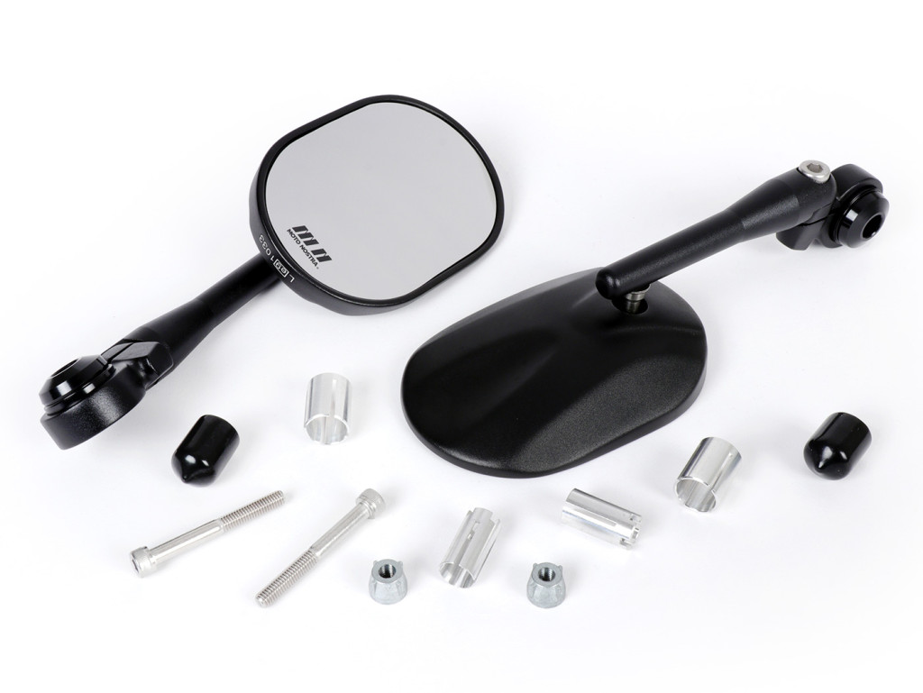 Tükörkészlet Moto Nostra 1404, alumínium CNC, kormányvégek fekete matt, kormányvégek fekete matt