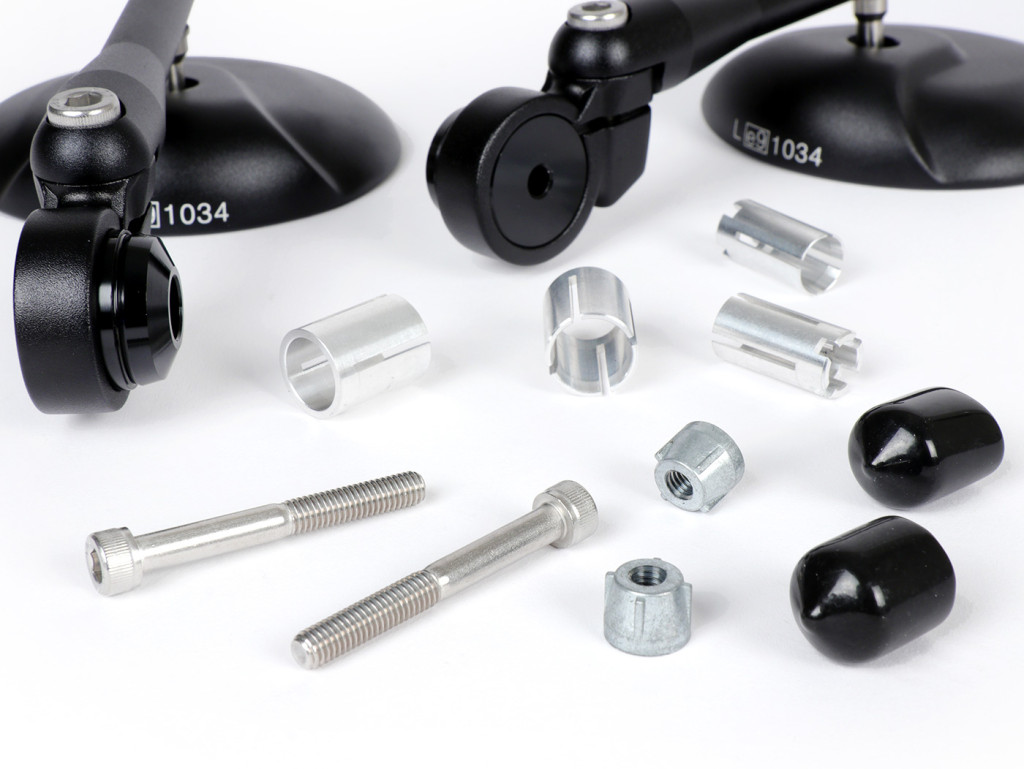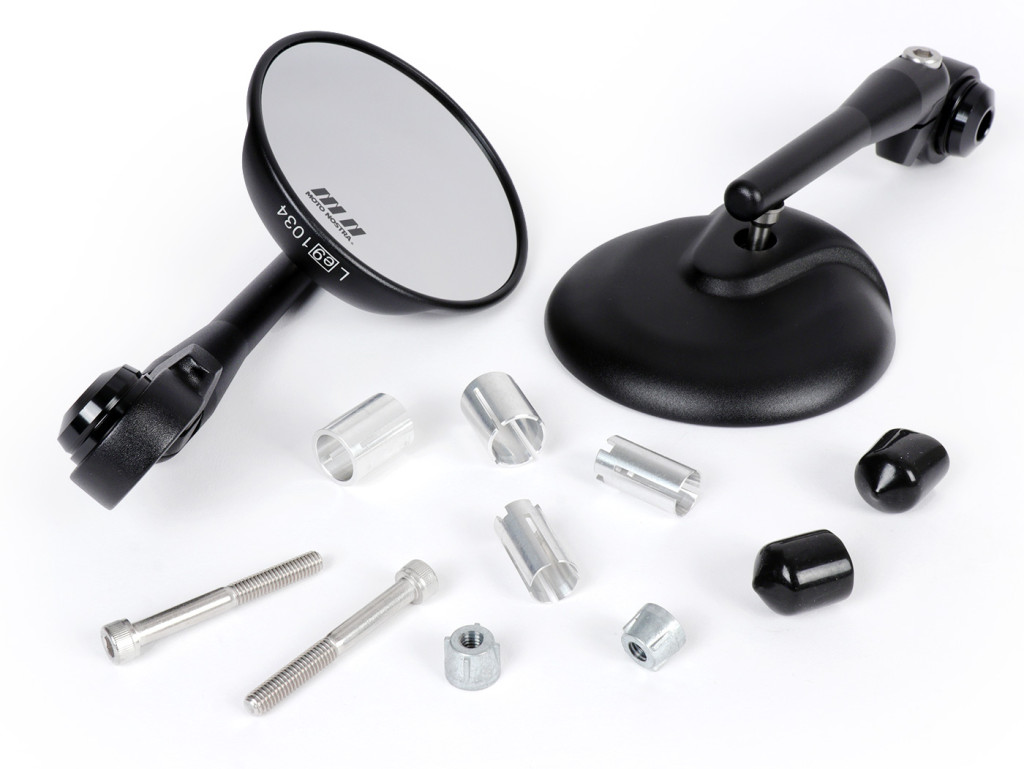 Tükörkészlet Moto Nostra 1406, alumínium CNC, kerek, kormányvégek fekete matt