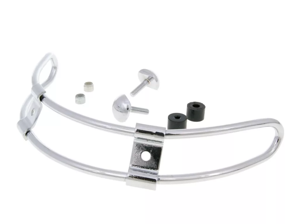 Emeld a Vespa robogód stílusát és védelmét egy új szintre ezzel a kiváló minőségű, krómozott ütköző és védő kerettel. A Buzzetti által gyártott termék tökéletesen illeszkedik Vespa Primavera, Sprint, S 50, 125, 150cc modellek első sárvédőjéhez.